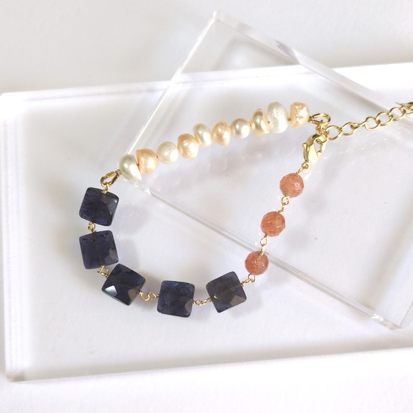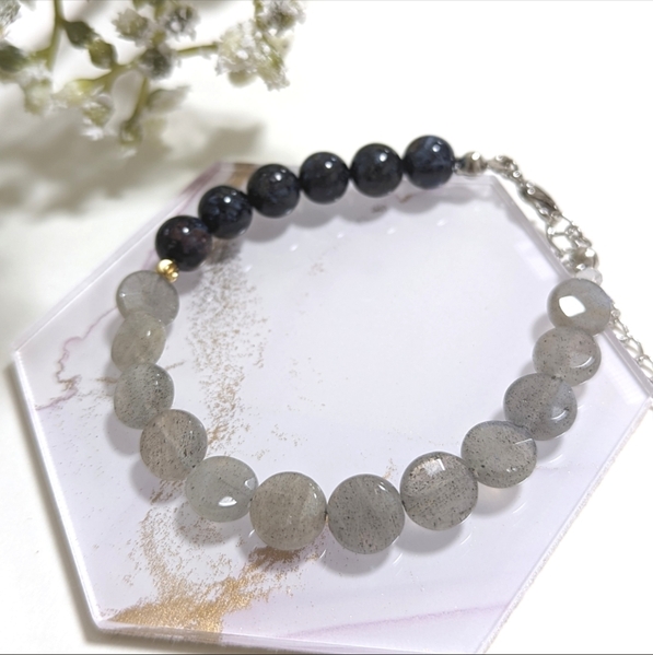 ラブラドライトとピーターサイトのシンプルデザインブレスレット