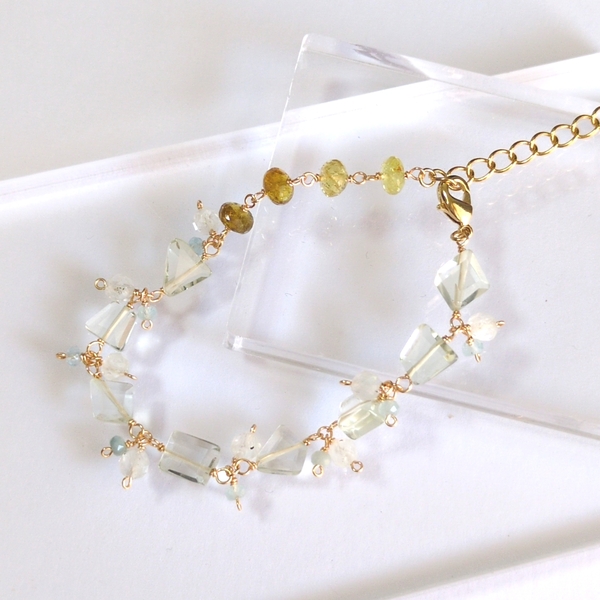 透明度バツグンのグリーンアメジストとグリーンガーネットのブレスレット
