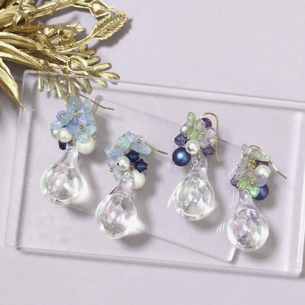 紫陽花×ガラスドームピアス(イヤリング変更可)