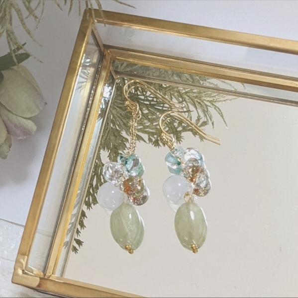 透明感バツグンのスコロライトが涼しげなピアス(イヤリング変更可)