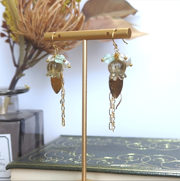 スモーキークォーツのスズランが爽やかなピアス(イヤリング変更可)