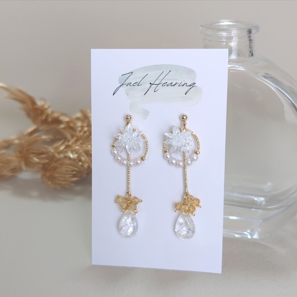 キュービックジルコニアのチャームやクラック水晶がキラキラ輝くピアス(イヤリング変更可)