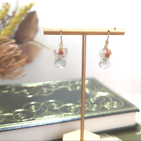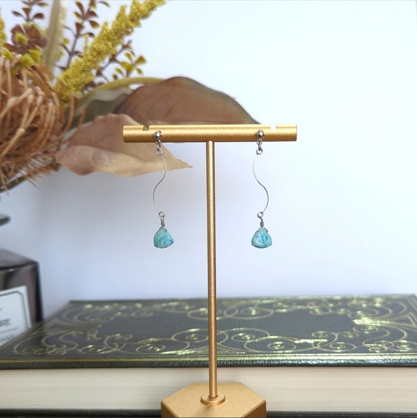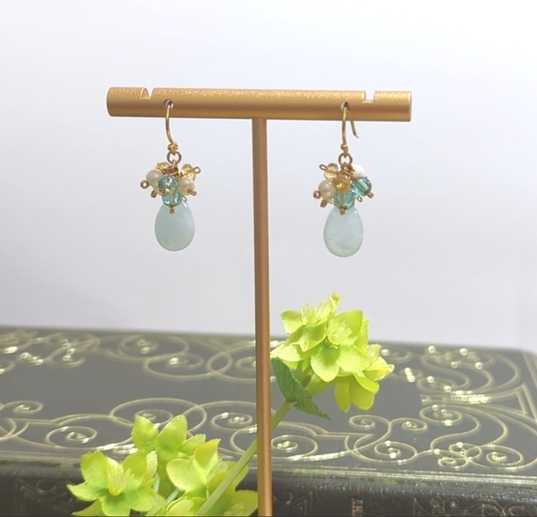 大粒ドロップカットアクアマリンとアパタイトの爽やかなピアス(イヤリング変更可)