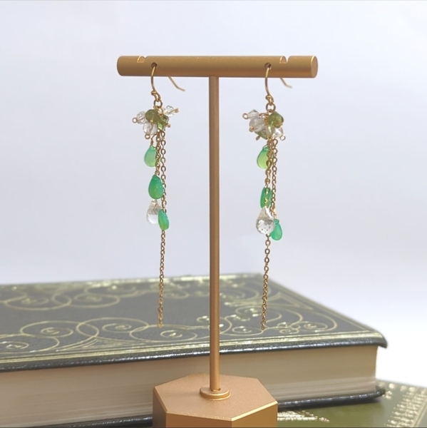 遊色が美しいグリーンエチオピアンオパールが揺れるロングピアス(イヤリング変更可)