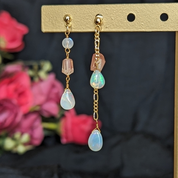 オパールとアンデシンの遊色が美しいピアス(イヤリング変更可)