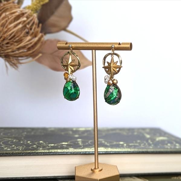 グリーンオパールのドラゴンズブレスとブライトスターのブレスパーツのピアス(イヤリング変更可)