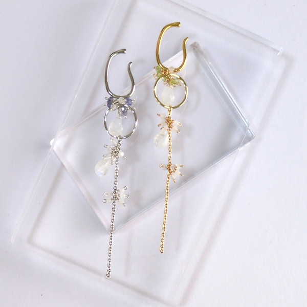 アルーシャサンストーンがキラキラ輝くピアス(イヤリング変更可)