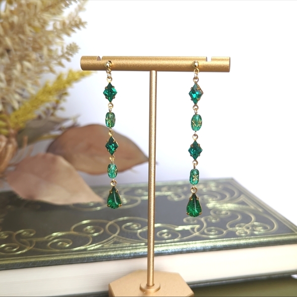ペリドットやクリスタルビジューがきらめくピアス~グリーン系~(イヤリング変更可)