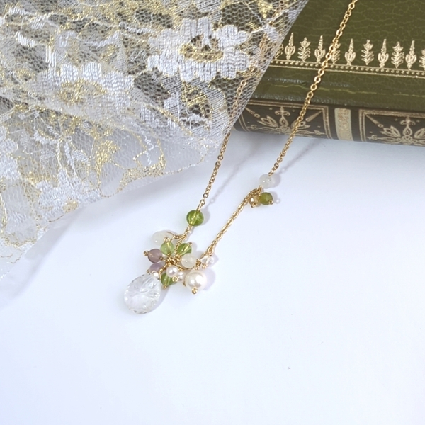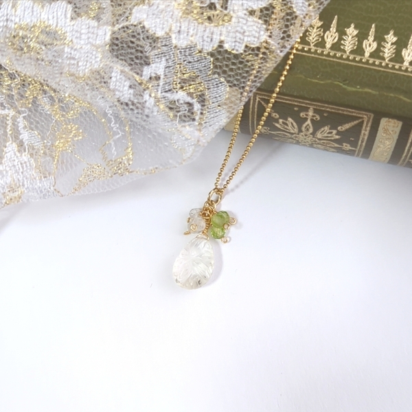 カービング水晶が繊細なネックレス(ペリドット・ラブラドライト)