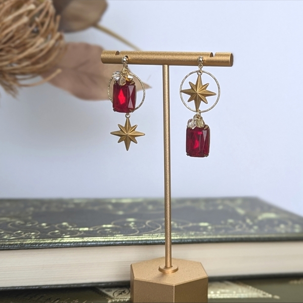 静かに紅く燃え上がるドラゴンズブレスのピアス(イヤリング変更可)