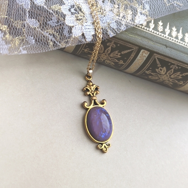 パープルカラーにブルーシラーが幻想的に浮かび上がるドラゴンズブレスのネックレス