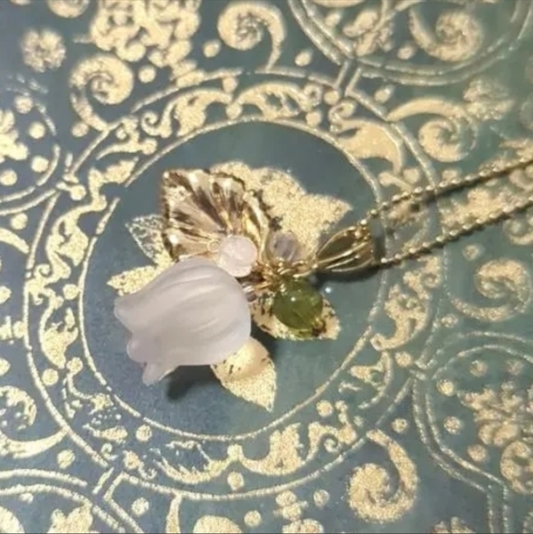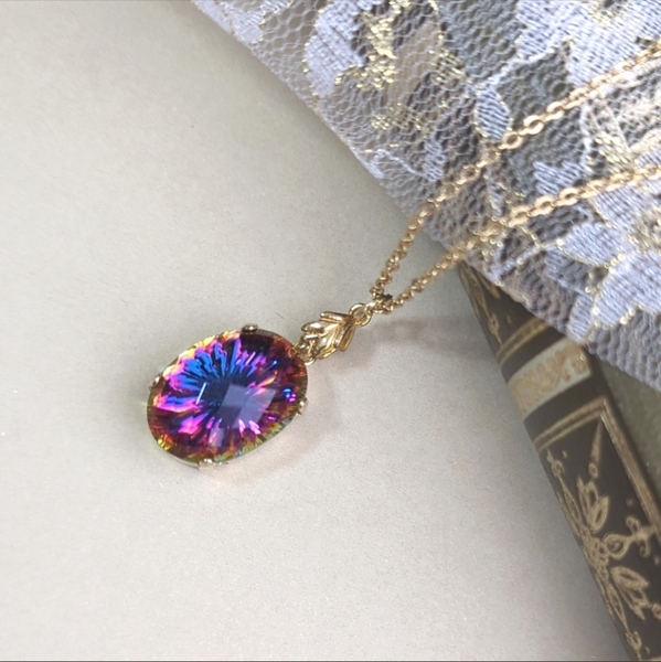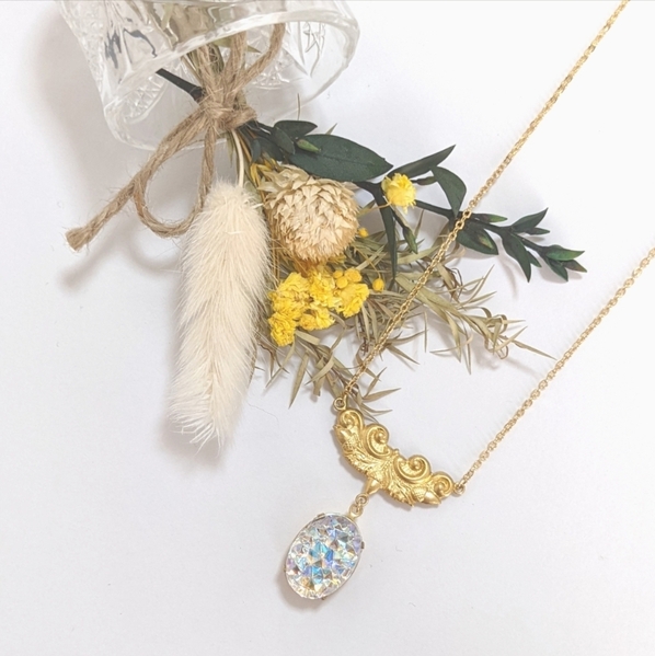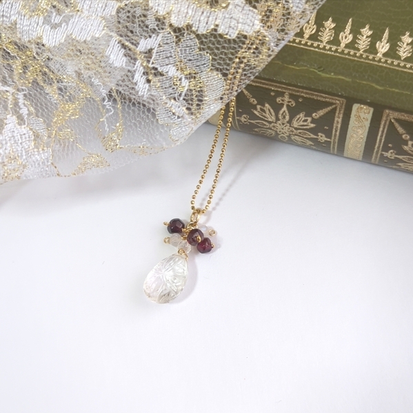 カービング水晶が繊細なネックレス(ガーネット・ラブラドライト)