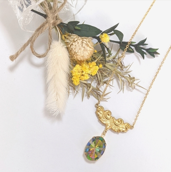 プリズムスターカットが眩いヴィンテージカボションのネックレス