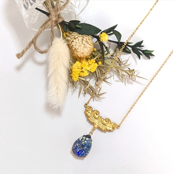 魅惑な輝きを放つブルー×シルバーのドラゴンズブレスネックレス