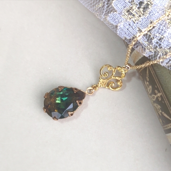 グリーン&トパーズの2トーンヴィンテージカボションネックレス