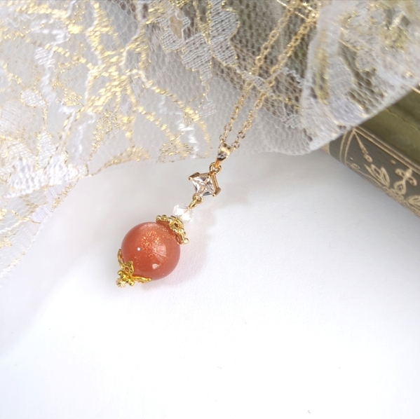 太陽のような輝くオレンジムーンストーンが煌めくネックレス