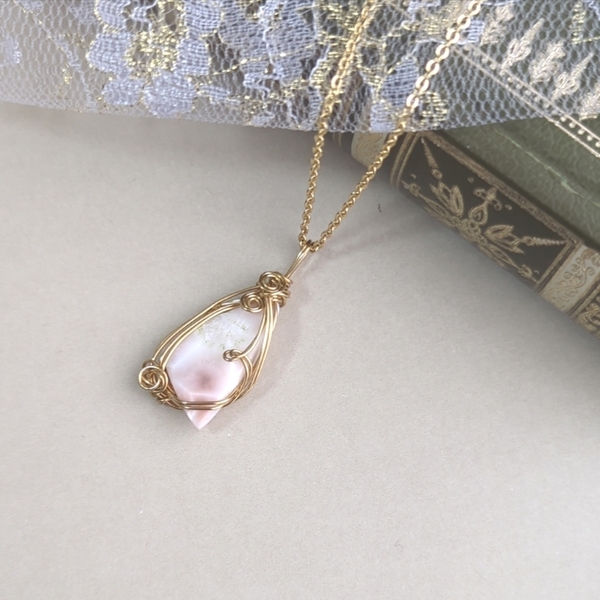 トムソナイト(ピンクラリマー)のワイヤーラッピングネックレス