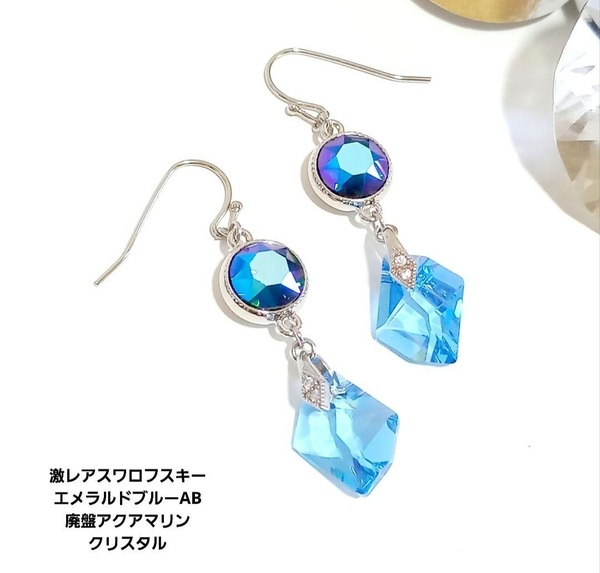 激レア◆幻想的な輝き◆廃盤スワロフスキーアクアマリン変形ピアス/イヤリング