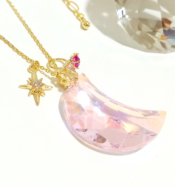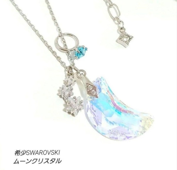 美しいオーロラの輝き◆希少スワロフスキーの三日月と流れ星ジルコニアのネックレス