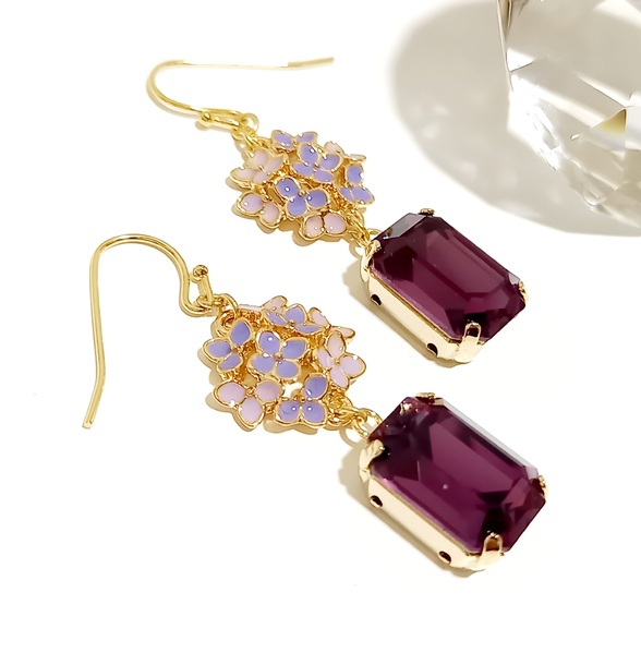 美しく上品◆紫陽花と煌めくスワロフスキーアメジストの綺麗めくピアス/イヤリング
