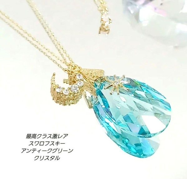 美しい透明感と輝き◆廃盤特注スワロフスキーアンティークグリーンの夜空のネックレス