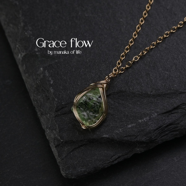 グリーンガーネット 原石 鉱物 ワイヤーラッピング ネックレス 14kgf