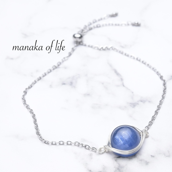 カイヤナイト ブレスレット ワイヤーラッピング アルゲンティウムシルバー ステンレス