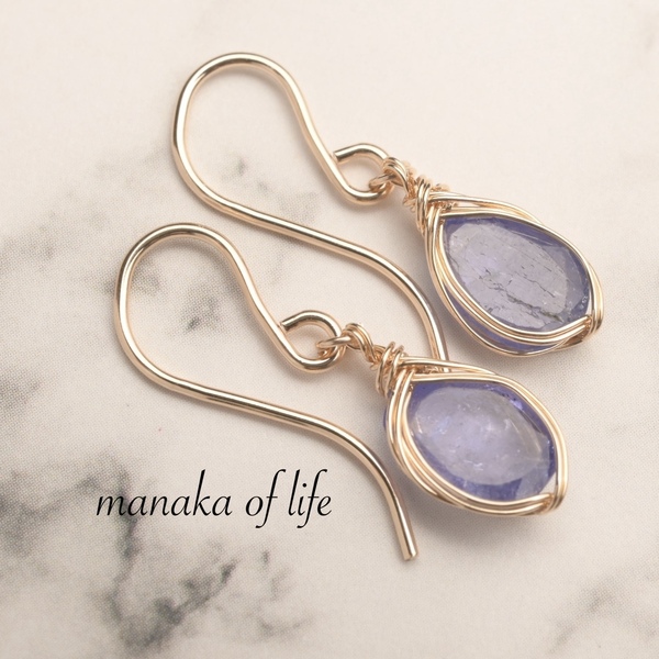 タンザナイト ピアス ワイヤーラッピング 14kgf 天然石