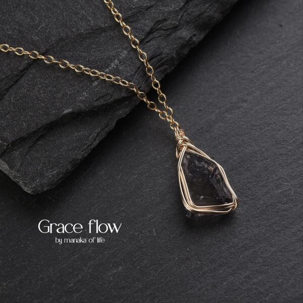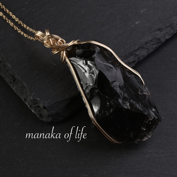 オブシディアン 黒曜石 ペンダントトップ ワイヤーラッピング ネックレス 14kgf 天然石 送料無料でお届けします