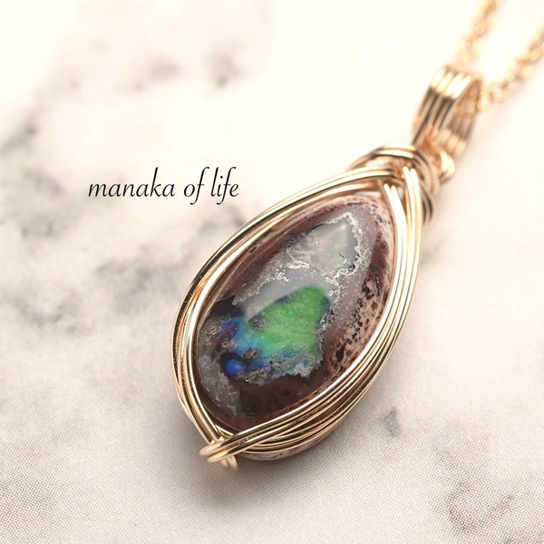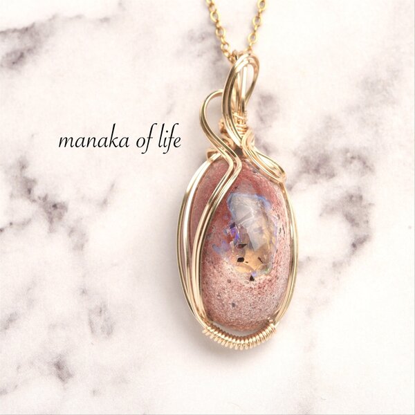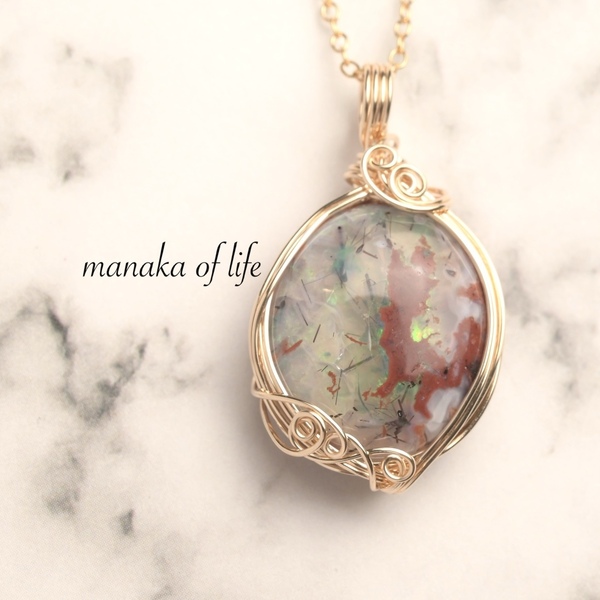 カンテラオパール ペンダントトップ ワイヤーラッピング ネックレス 14kgf
