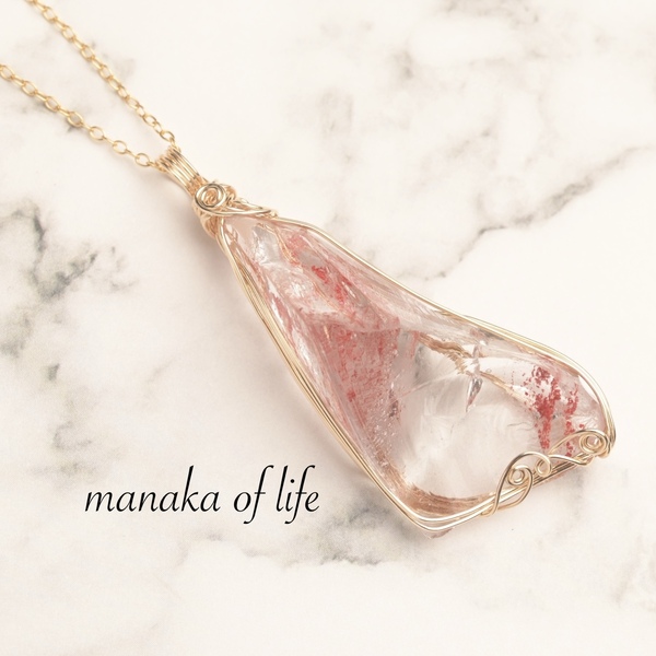 シエラネバダ産 アンダラクリスタル パステルセレスチャルハート ペンダントトップ ワイヤーラッピング ネックレス 14kgf