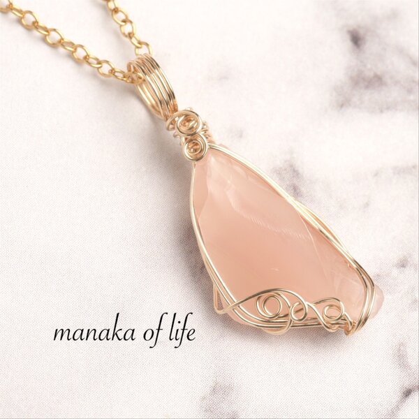カンテラオパール ペンダントトップ ワイヤーラッピング ネックレス 14kgf 天然石