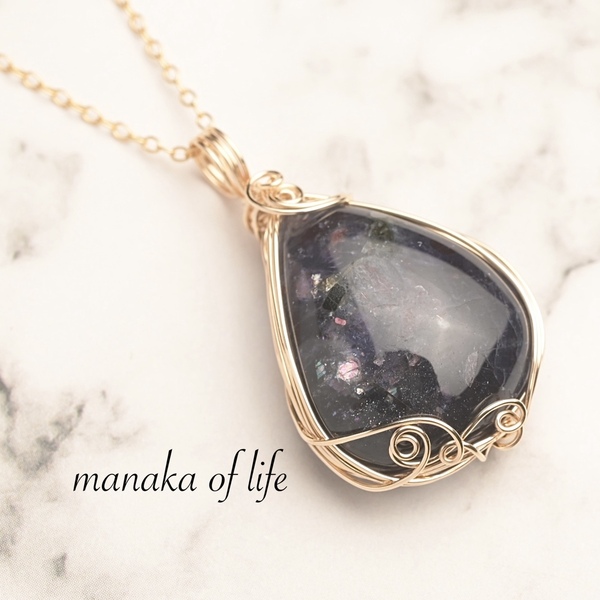 アイオライトサンストーン ペンダントトップ ワイヤーラッピング 14kgf 天然石 ネックレス