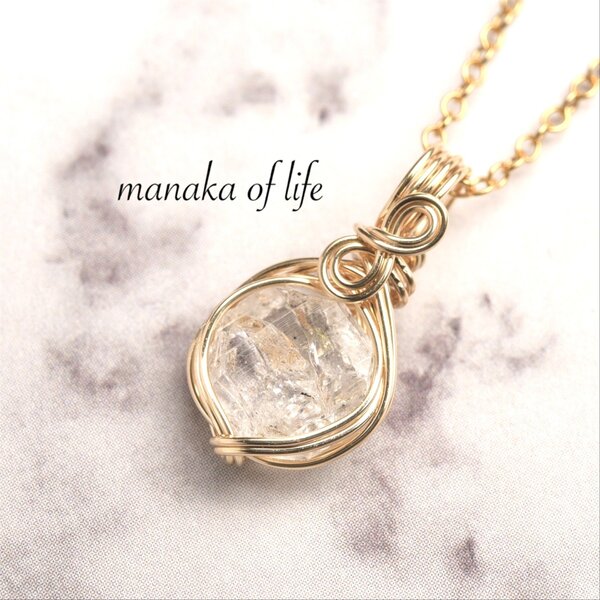 ハーキマーダイヤモンド ペンダントトップ ワイヤーラッピング 14kgf 天然石 ネックレス