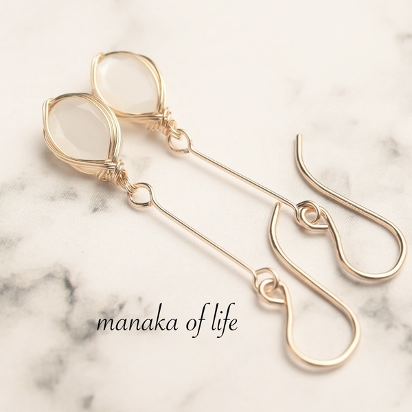 ホワイトムーンストーン ピアス ワイヤーラッピング 14kgf
