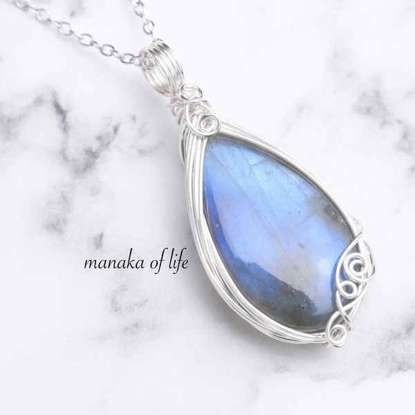 ラブラドライト ペンダントトップ ワイヤーラッピング ネックレス アルゲンティウムシルバー silver935 天然石