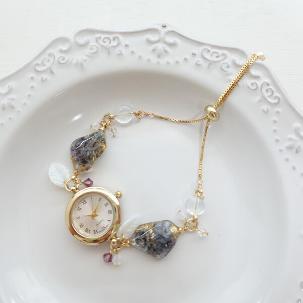 天然石・ドライフラワーレジン・ビーズ等を使用したハンドメイドのブレスレットウォッチを販売いたします。