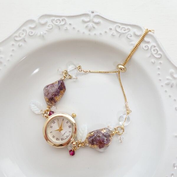 カスミソウのブレスレットウォッチ -マルベリー-