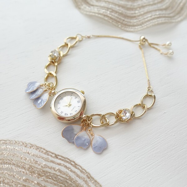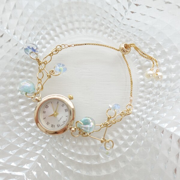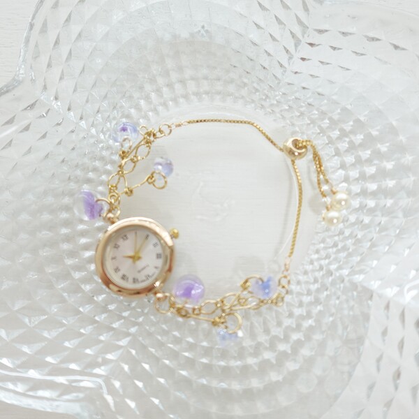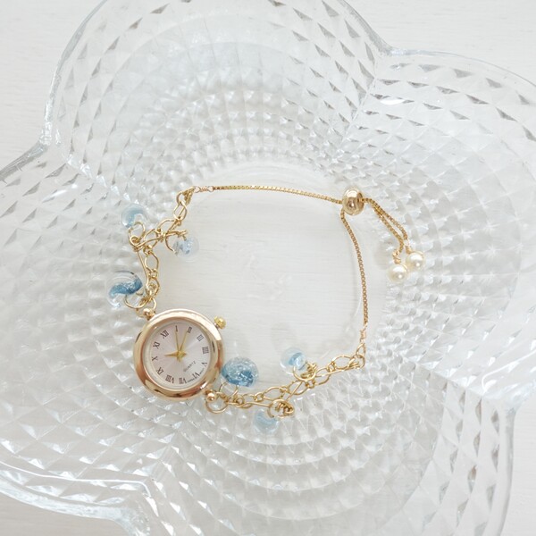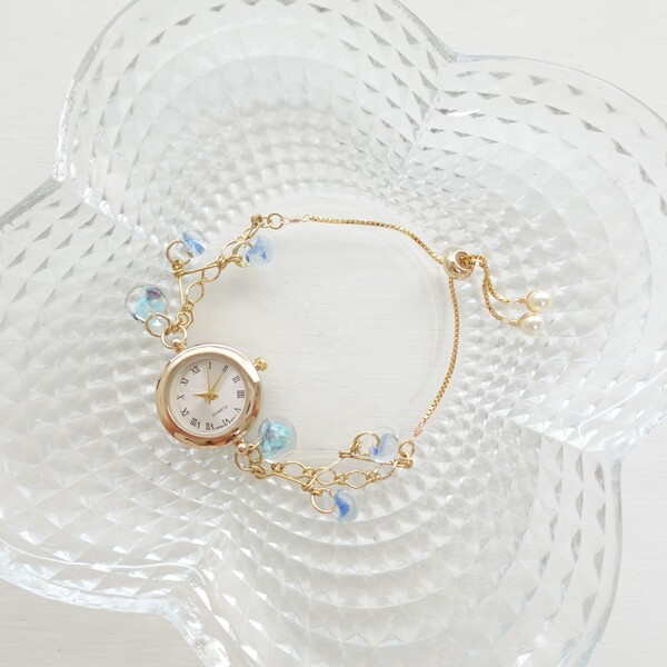 ネモフィラのワイヤーフラワーのブレスレットウォッチ