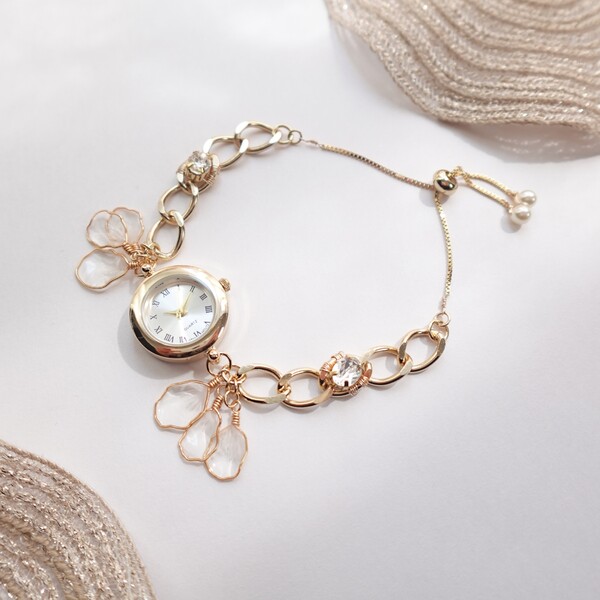 サンカヨウのワイヤーフラワーのブレスレットウォッチ