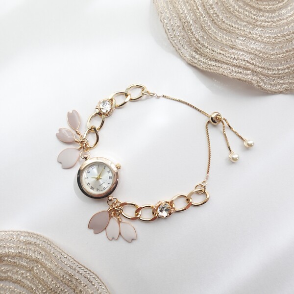 サクラのワイヤーフラワーのブレスレットウォッチ