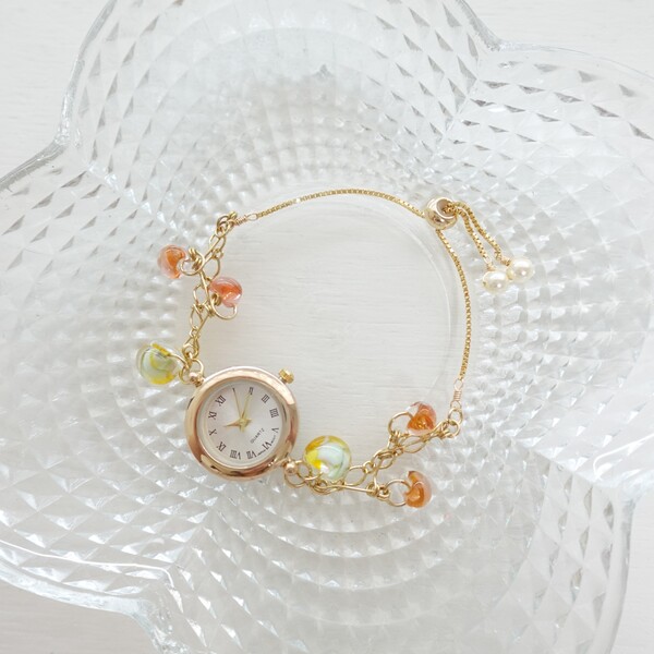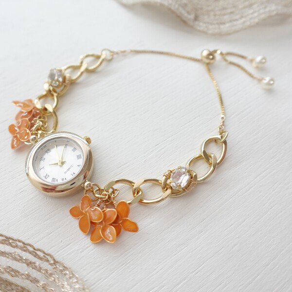 キンモクセイのワイヤーフラワーのブレスレットウォッチ