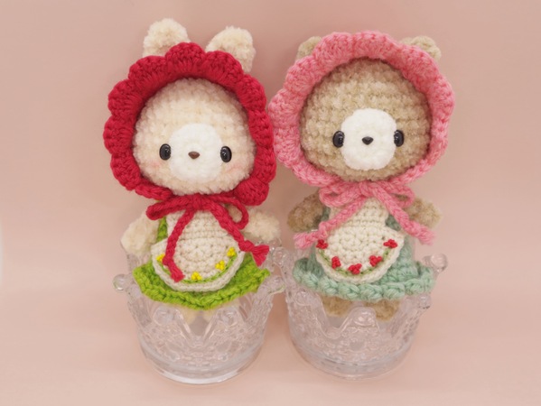 手のひらサイズのカントリー風うさぎさん・くまさん