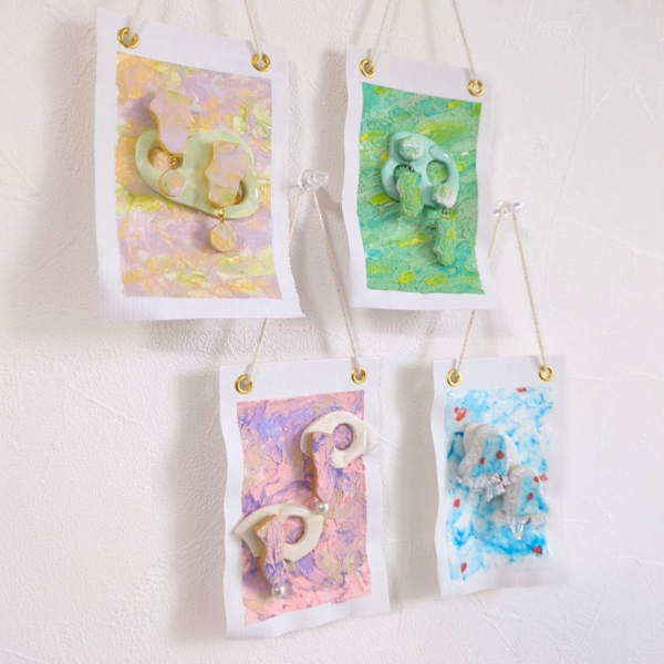 【出展概要】 絵に石塑粘土を組み合わせたアートや石塑粘土を使ったアクセサリーを販売します。 約15×15cmのアートパネル5,6種類、アクセサリー(イヤリング・ピアス・イヤーカフ・ヘアクリップなど)約40~60個を出展します。 【ブランドコンセプト】 kaoiroでは「日々の感情と向き合い、寄り添う。」をテーマにせきそ粘土を使った絵とアクセサリーを制作しています。 感情を絵で表現し、さらにその絵にリンクした アクセサリーを作ることで、感情を身に纏い、あなたにそっと寄り添います。