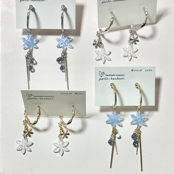 雪の結晶のヘアクリップ(4種類) 各1つ