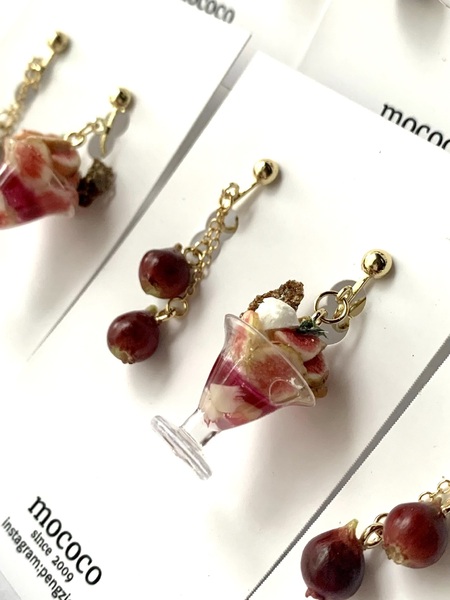 多種多様な粘土で、ミニチュアフラワー、ミニチュアフードのアクセサリーやオブジェをつくっています。 1/12スケールの作品が多いので、ほとんどの方が小ささに驚かれます。