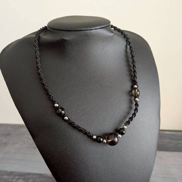 オニキス・スモーキークォーツマクラメネックレス