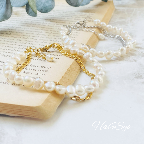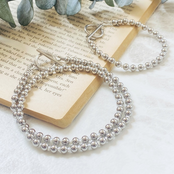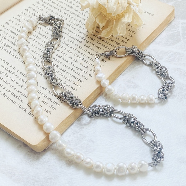 淡水パールとガラスビーズを使ったステンレスアクセサリー