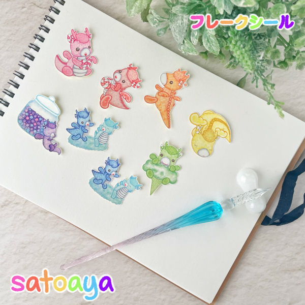 個性豊かな、キャラクターたちのシールを販売します。ファンタジックなカワイイものがお好きな方に、好んでいただけるようなキャラクターたちです。また、シールを活用した雑貨などもございますので、ぜひお立ち寄りください。