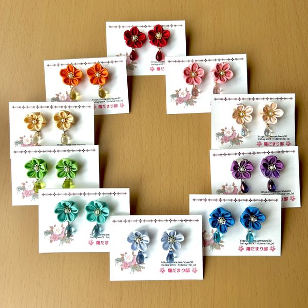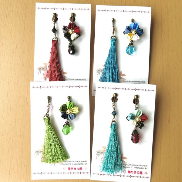 色合わせにこだわった、つまみ細工と巻き玉のアクセサリーを制作しています。